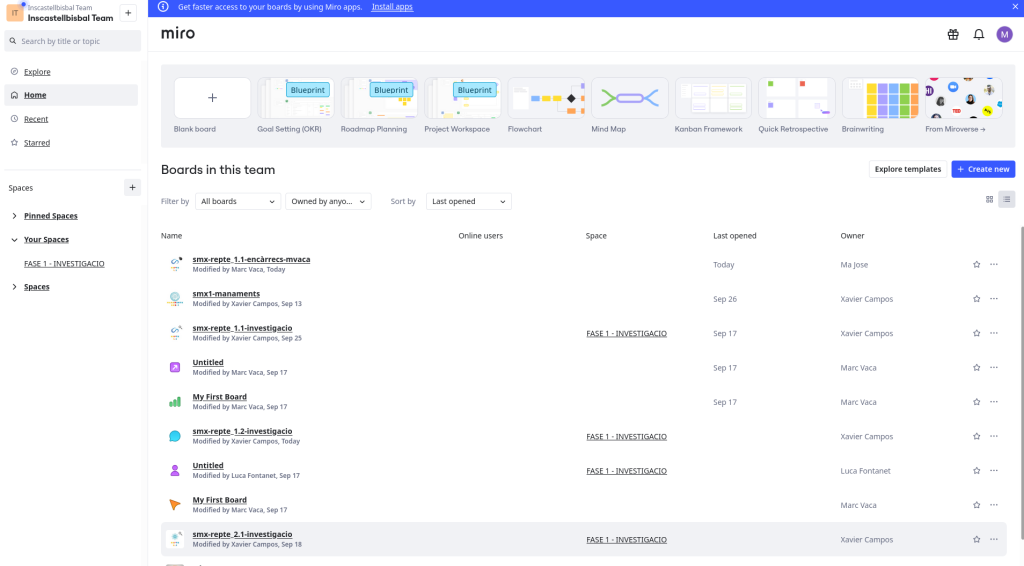 • Valoració de l’ús del compte corporatiu en plataformes col·laboratives com Miro. S’avalua la integració del correu com a eina de treball i comunicació efectiva.