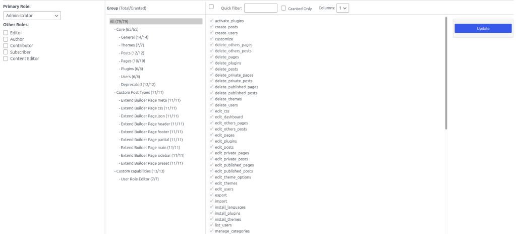 També he instal·lat un complement anomenat User Role Editor, que permet assignar diferents rols als usuaris que tenen accés al lloc web. Gràcies a aquesta eina, puc controlar què pot fer cada usuari segons el rol que se li assigni. En el meu cas, m’he configurat com a administrador per tenir permisos complets i poder gestionar tots els aspectes del web sense restriccions.