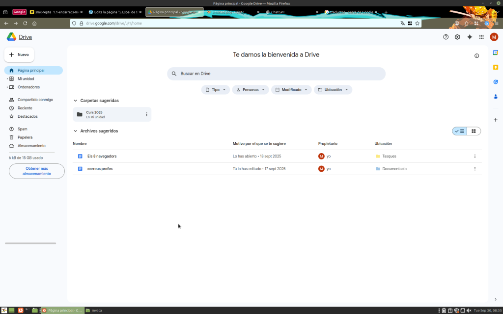 He creat una estructura de directoris a Google Drive que permet organitzar tota la informació de manera lògica i accessible. A l’arrel del Drive es troben carpetes principals com “Projectes”, “Recursos”, “Comparatives” i “Documentació”, i dins de cadascuna, subcarpetes que segueixen un criteri temàtic o funcional.