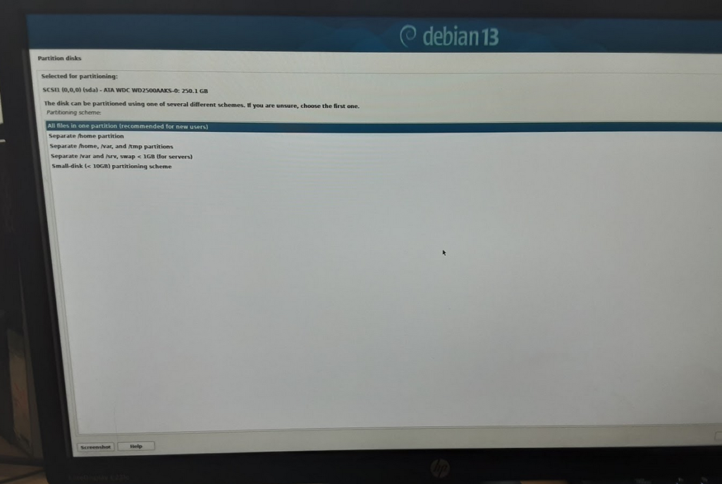 El particionament pot ser automàtic, on Debian crea les particions bàsiques de forma ràpida i segura, o manual, que permet definir-les amb més detall i separar espais com /home o swap. Tot i ser més complex, en els manaments de classe vam haver de fer-lo manualment per aprendre el procés i entendre millor l’estructura del disc.