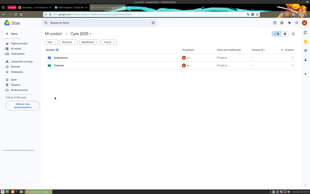 1 Crea una carpeta principal (per exemple: “Curs 2025”) i dins subcarpetes (“Assignatures”, “Projectes”). Pots afegir colors o codis (p. ex. [INF] Programació).